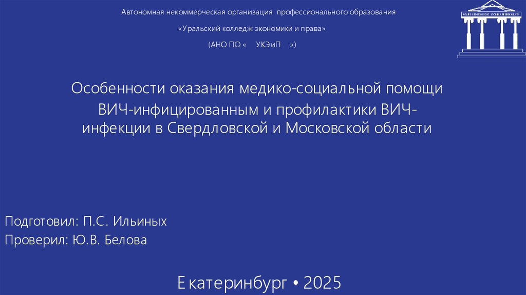 • Изучить условия и порядок оказания медико-социальной помощи ВИЧинфицированным и профилактика ВИЧ-инфекции в Свердловской области;