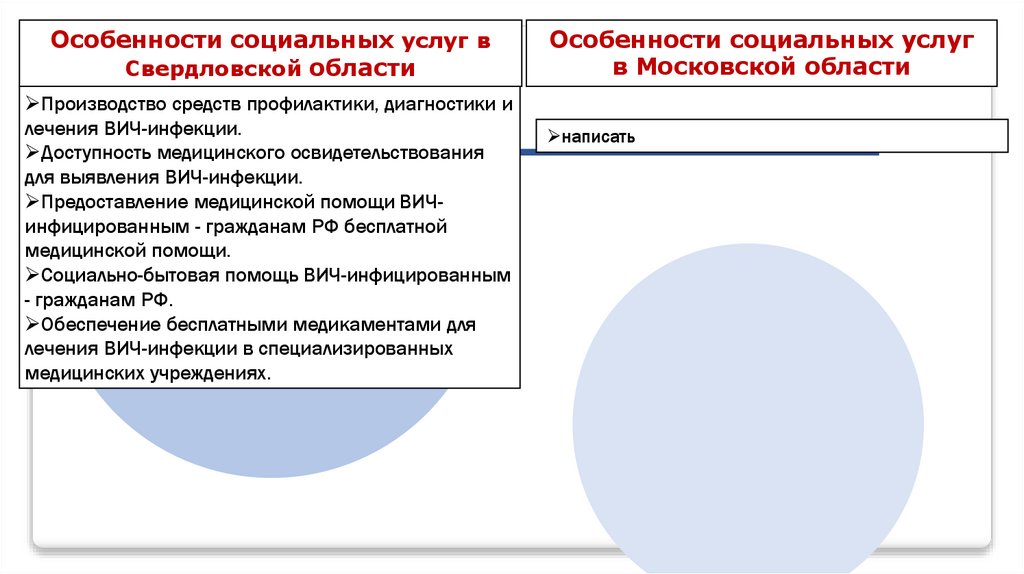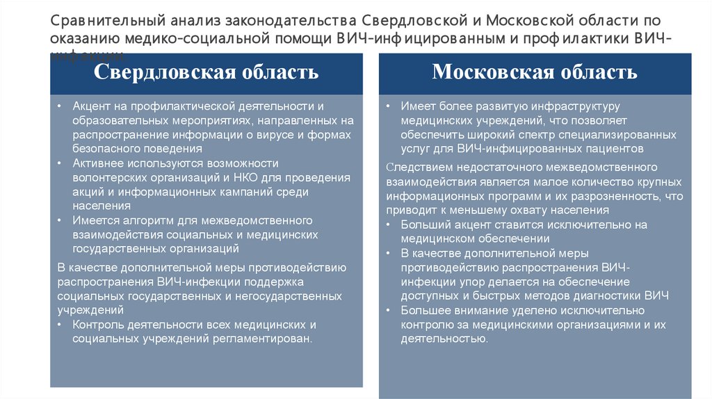Особенности оказания медико-социальной помощи ВИЧ-инфицированным и профилактики ВИЧинфекции в Свердловской и Московской области