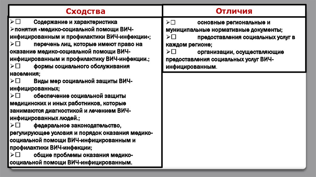понятия «медико-социальной помощи ВИЧинфицированным и профилактики ВИЧ-инфекции»;