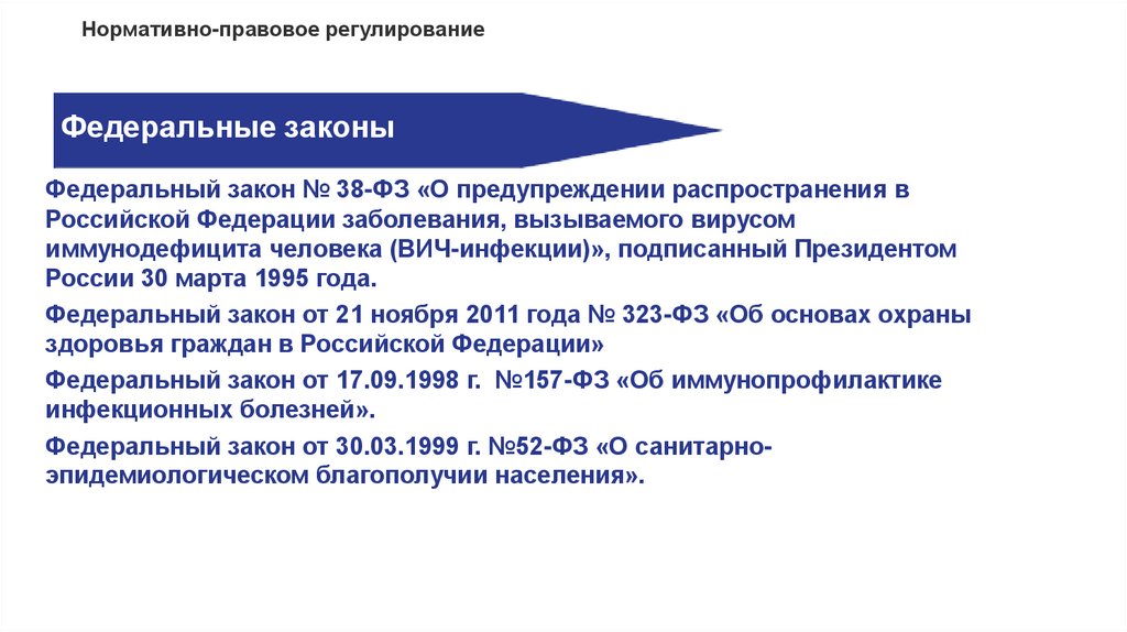 Федеральный закон от 30.03.1999 г. №52-ФЗ «О санитарноэпидемиологическом благополучии населения».