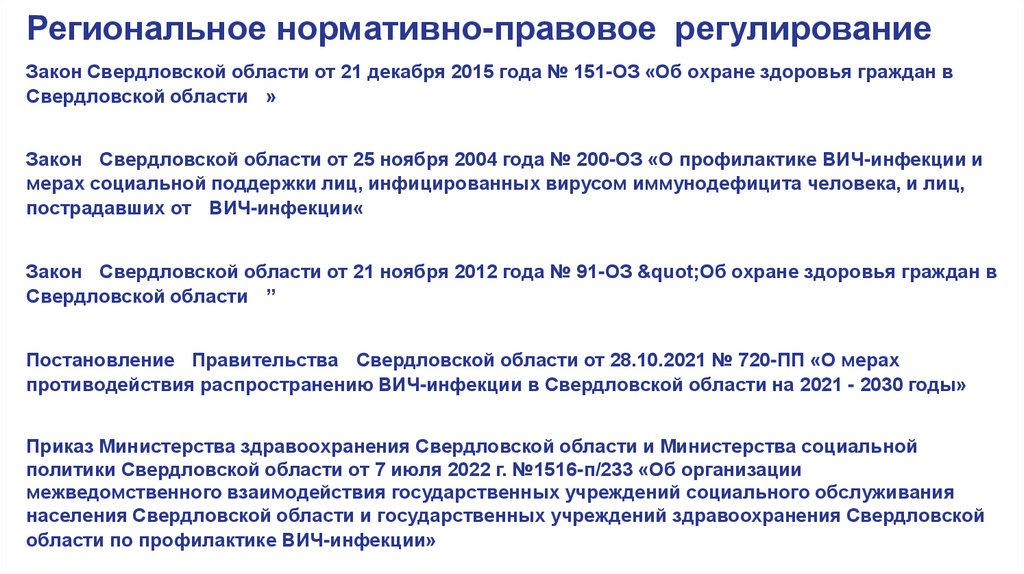 Региональное нормативно-правовое регулированиеЗакон Свердловской области от 21 декабря 2015 года № 151-ОЗ «Об охране здоровья граждан в