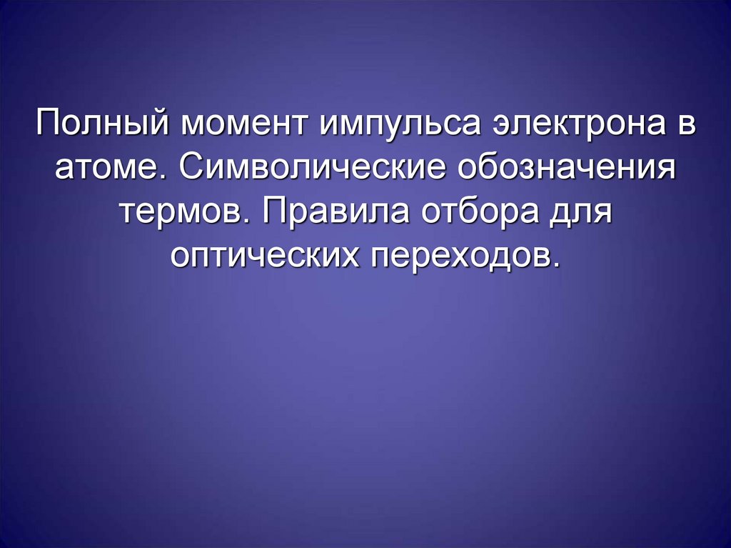 Полный момент импульса электрона в атоме. Символические обозначения термов. Правила отбора для оптических переходов