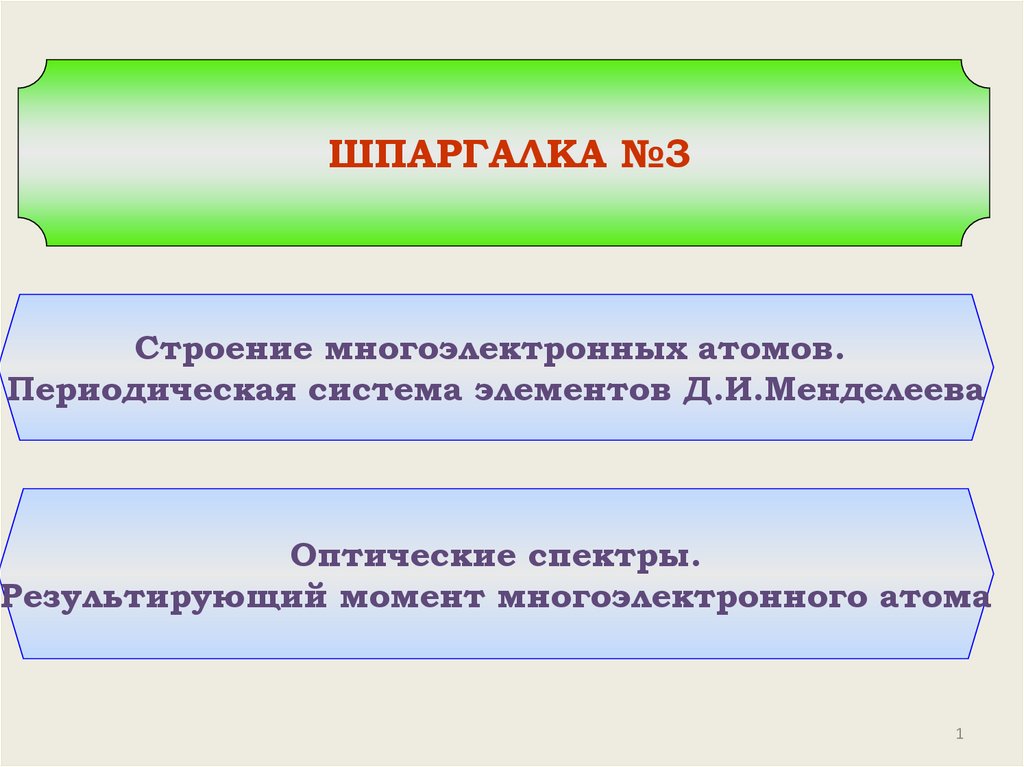 ШПАРГАЛКА №3Строение многоэлектронных атомов.