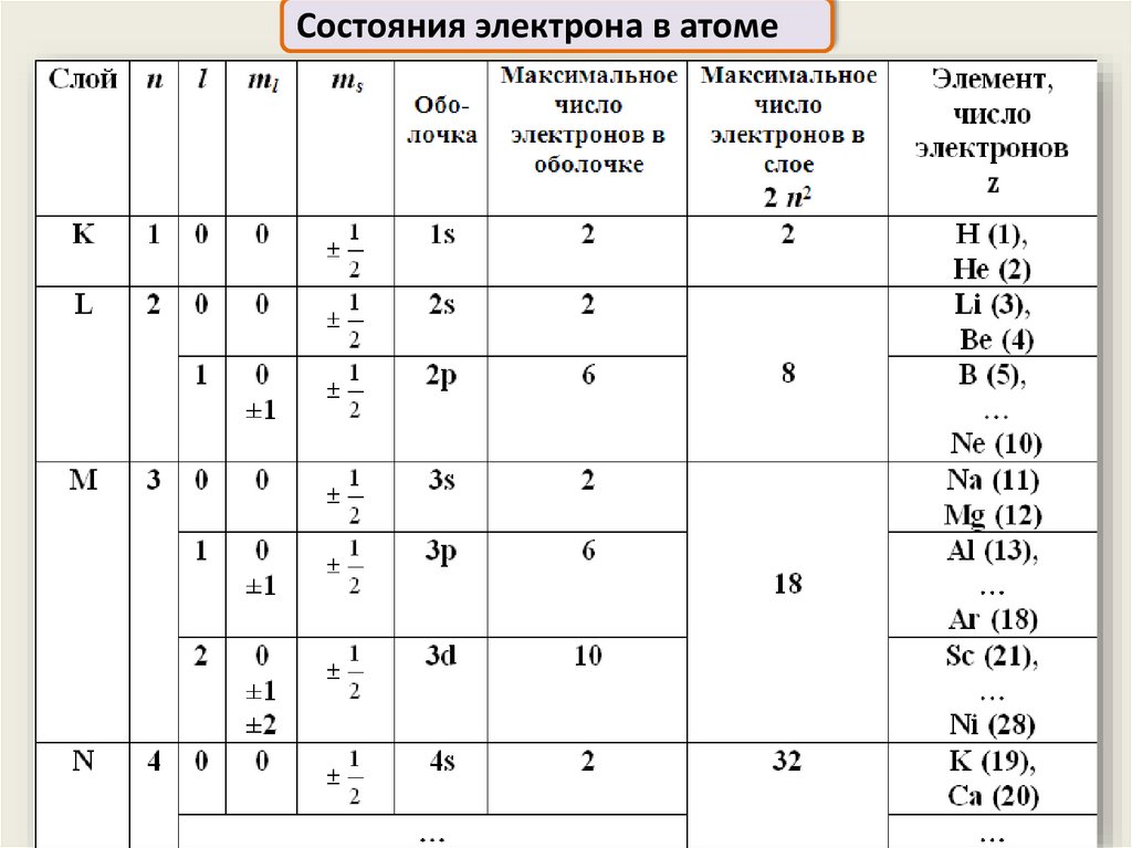 Строение многоэлектронных атомовСостояние каждого электрона в атоме характеризуется