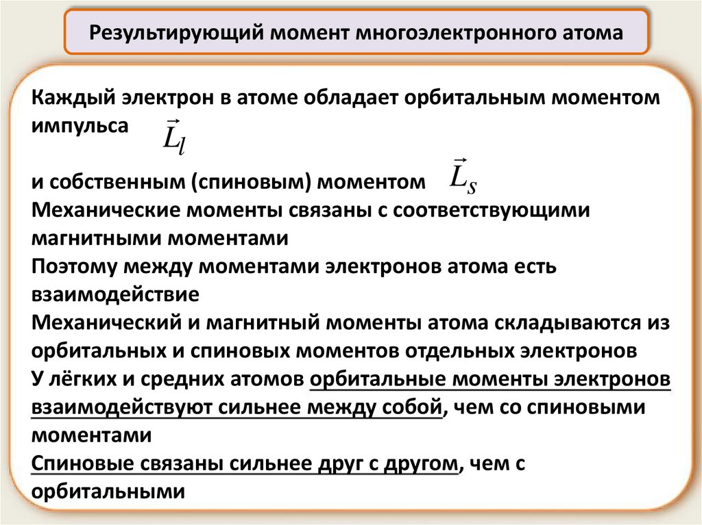 Результирующий момент многоэлектронного атомаЕсли внутренние оболочки атома полностью