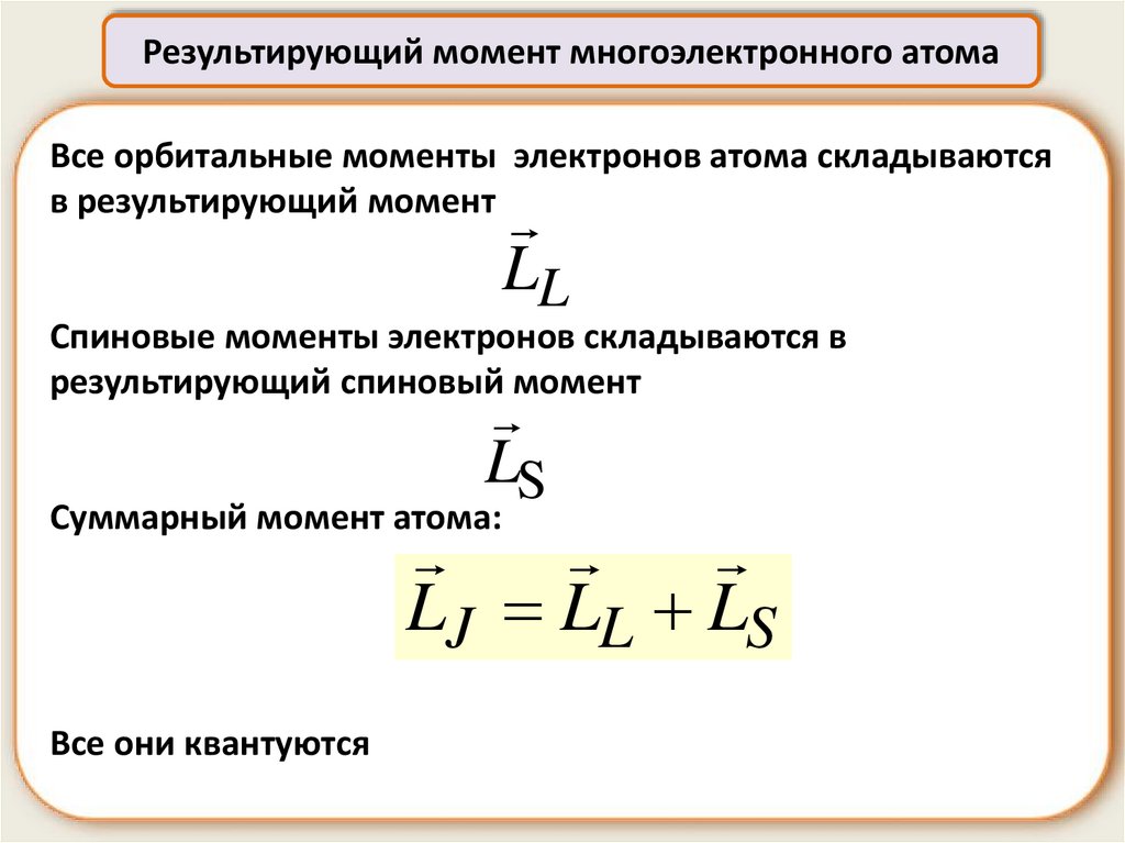 Результирующий момент многоэлектронного атомаВсе орбитальные моменты электронов атома складываются