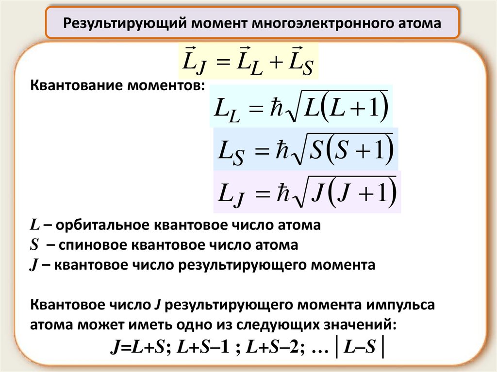 J – квантовое число результирующего момента