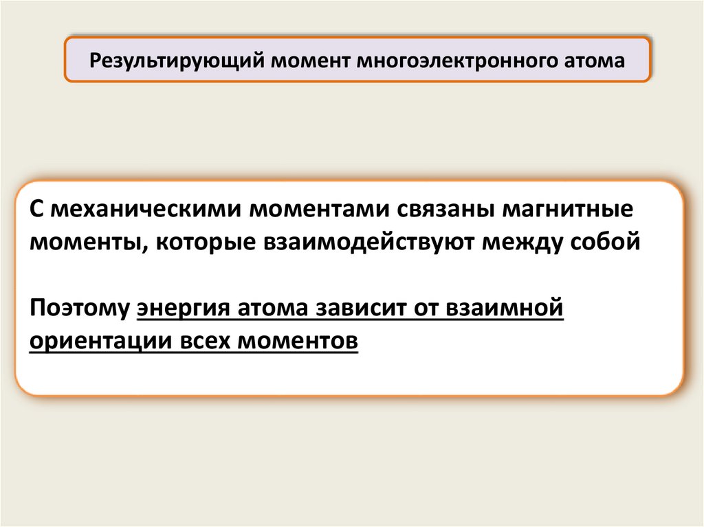 Результирующий момент многоэлектронного атомаС механическими моментами связаны магнитные