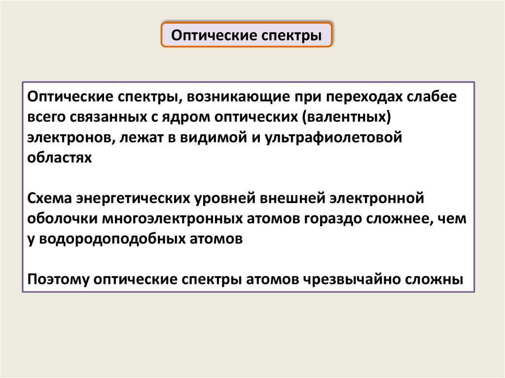 Поэтому оптические спектры атомов чрезвычайно сложны