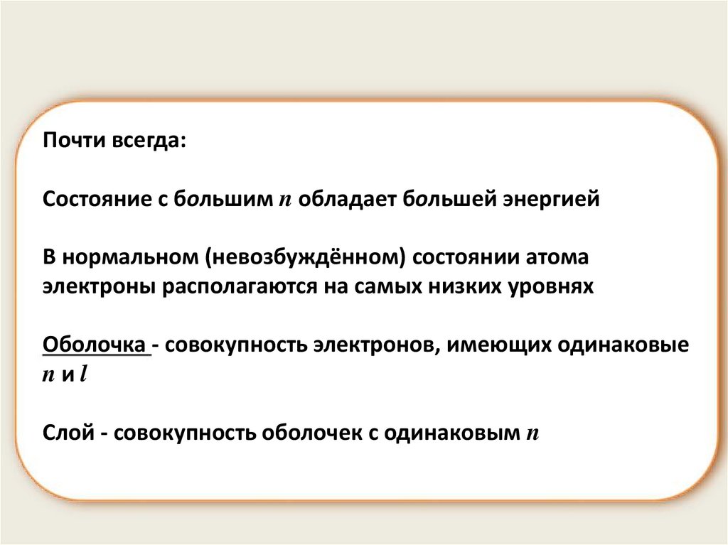 Оболочка - совокупность электронов, имеющих одинаковые