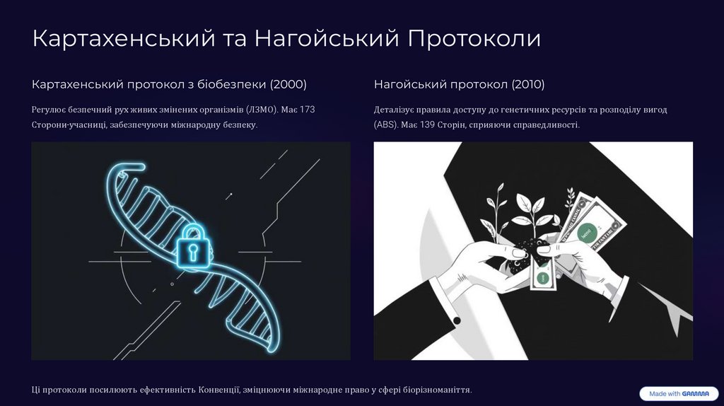 Ці протоколи посилюють ефективність Конвенції, зміцнюючи міжнародне право у сфері біорізноманіття.