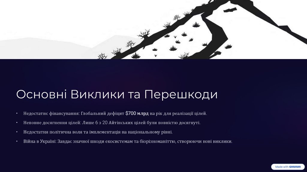 Основні Виклики та ПерешкодиНедостатнє фінансування: Глобальний дефіцит $700 млрд на рік для реалізації цілей.