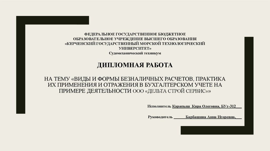 1. ДИПЛОМНАЯ РАБОТА на тему «Виды и формы безналичных расчетов, практика их применения и отражения в бухгалтерском учете на