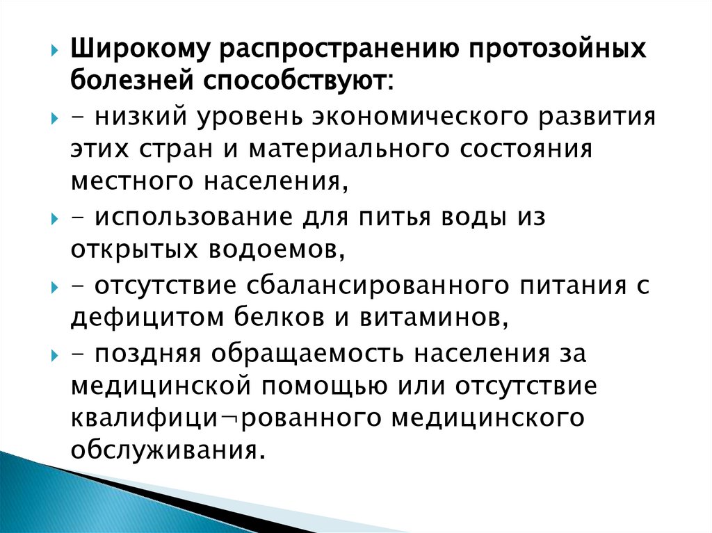 Широкому распространению протозойныхболезней способствуют: