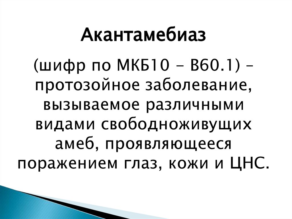 Акантамебиаз(шифр по МКБ10 - B60.1) –