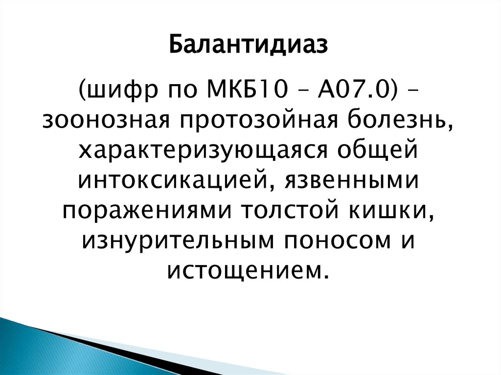 Балантидиаз(шифр по МКБ10 – А07.0) –
