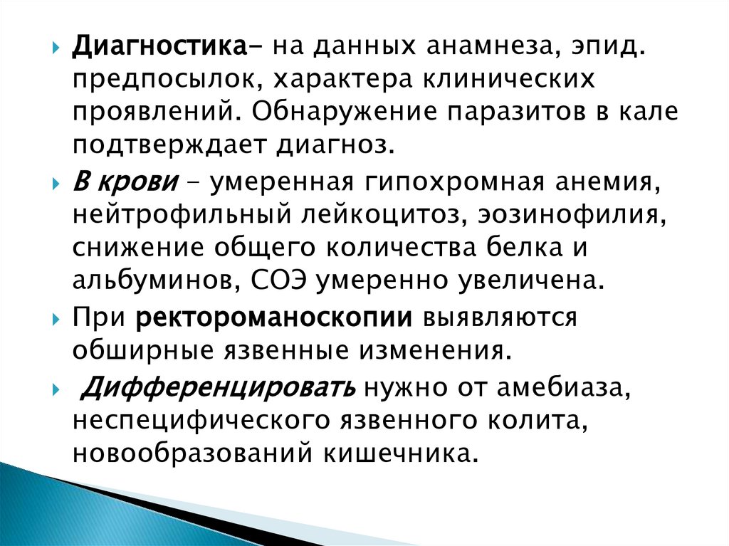 Дифференцировать нужно от амебиаза,