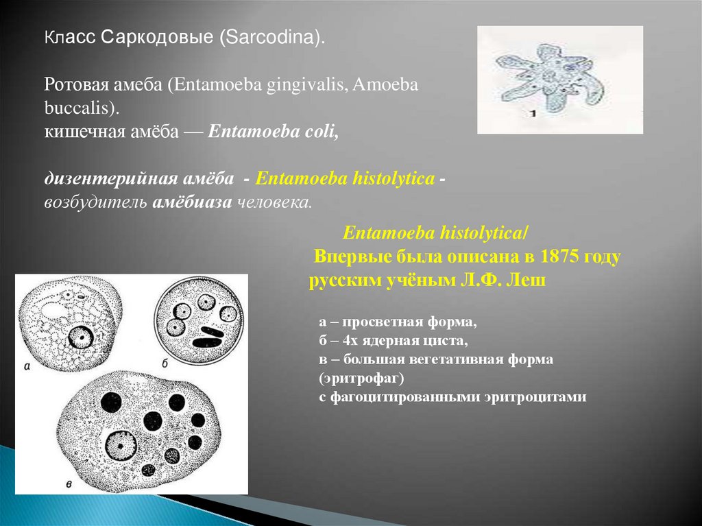 Класс Саркодовые (Sarcodina).Ротовая амеба (Entamoeba gingivalis, Amoeba