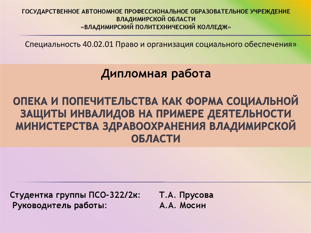 10. Особенности управления системой опеки и попечительства над инвалидами во Владимирской области