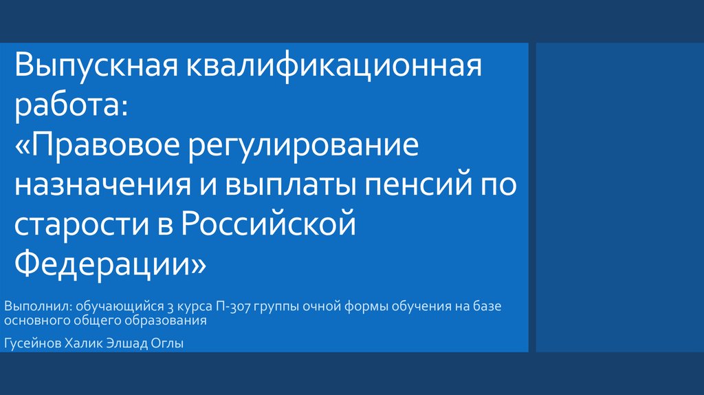 1. Выпускная квалификационная работа: «Правовое регулирование назначения и выплаты пенсий по старости в Российской Федерации»