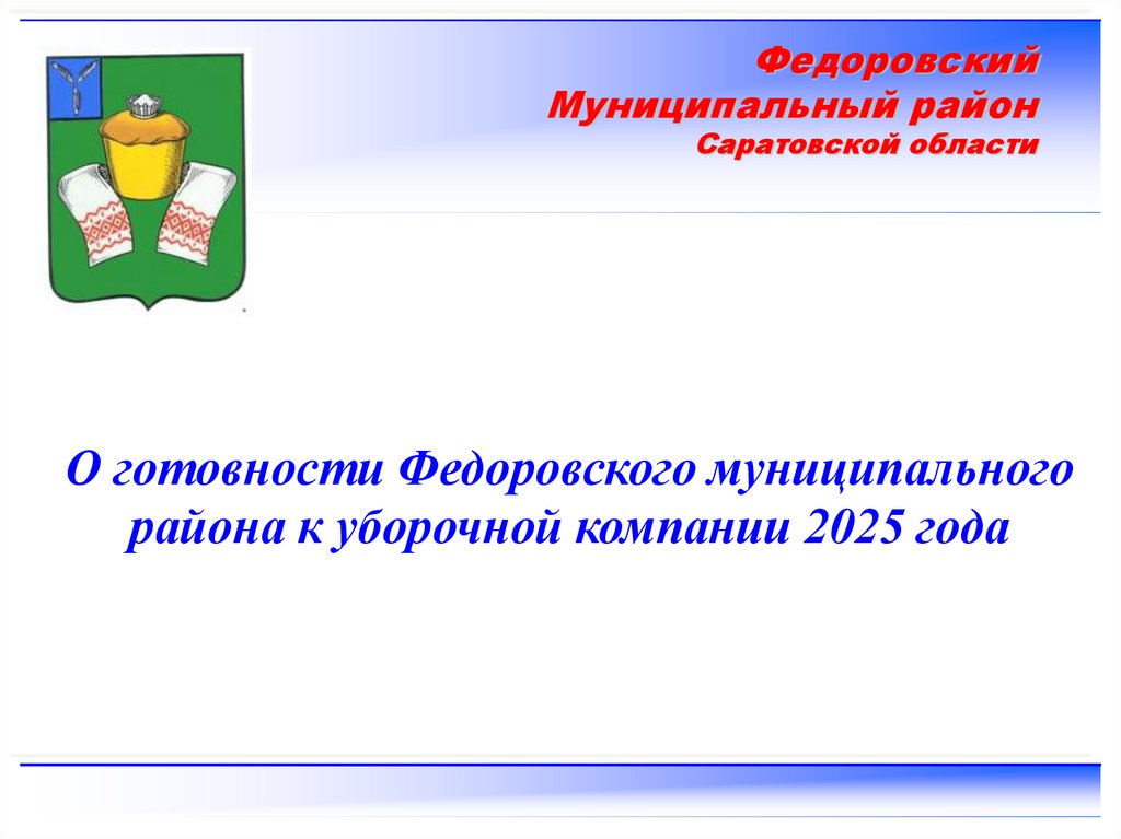 1. О готовности Федоровского муниципального района к уборочной компании 2025 года