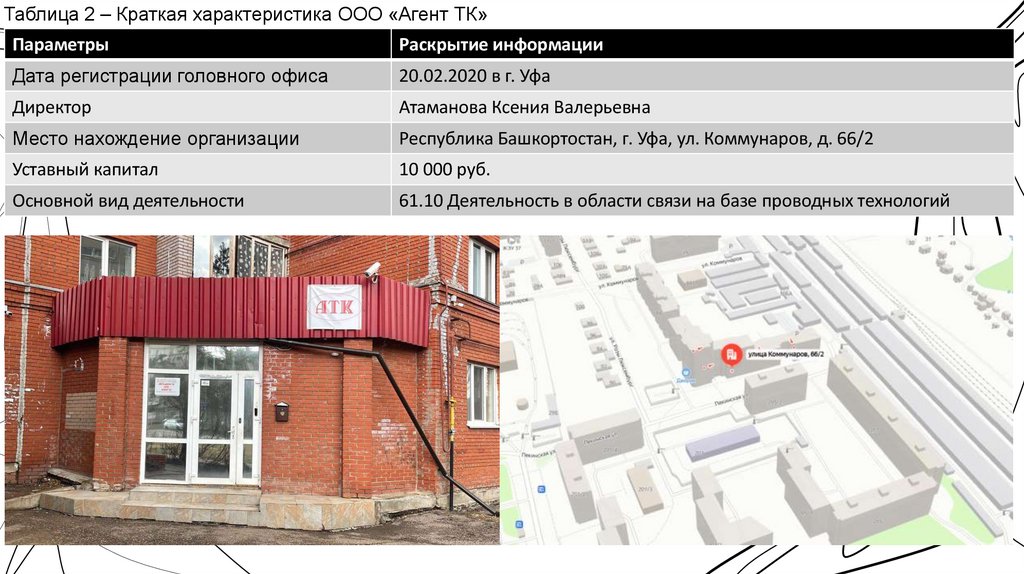 Таблица 2 – Краткая характеристика ООО «Агент ТК»Параметры