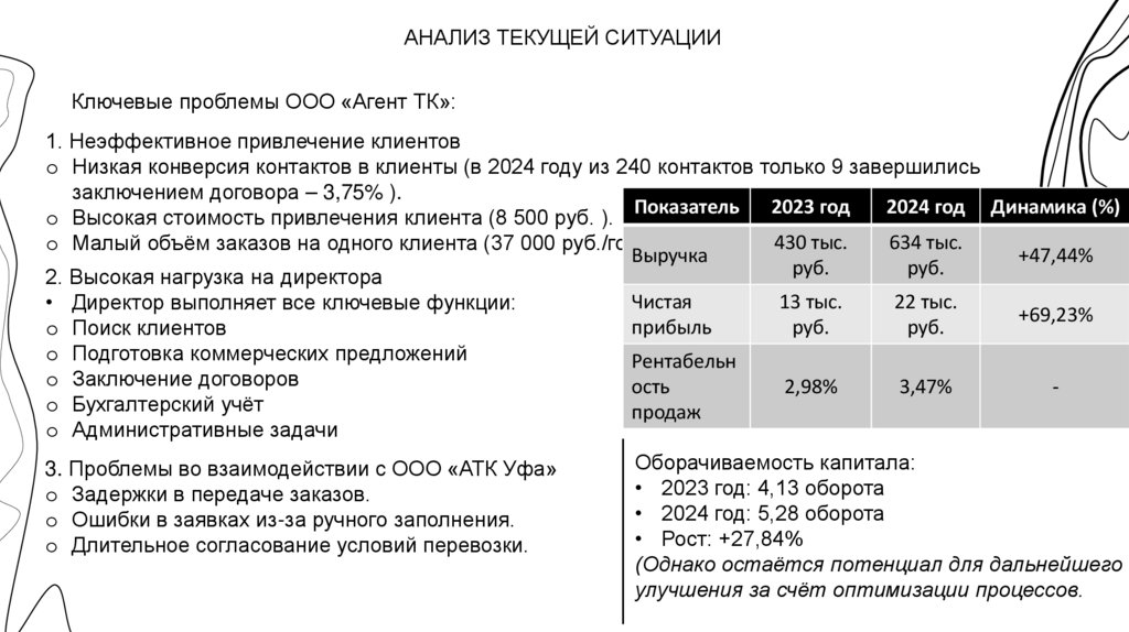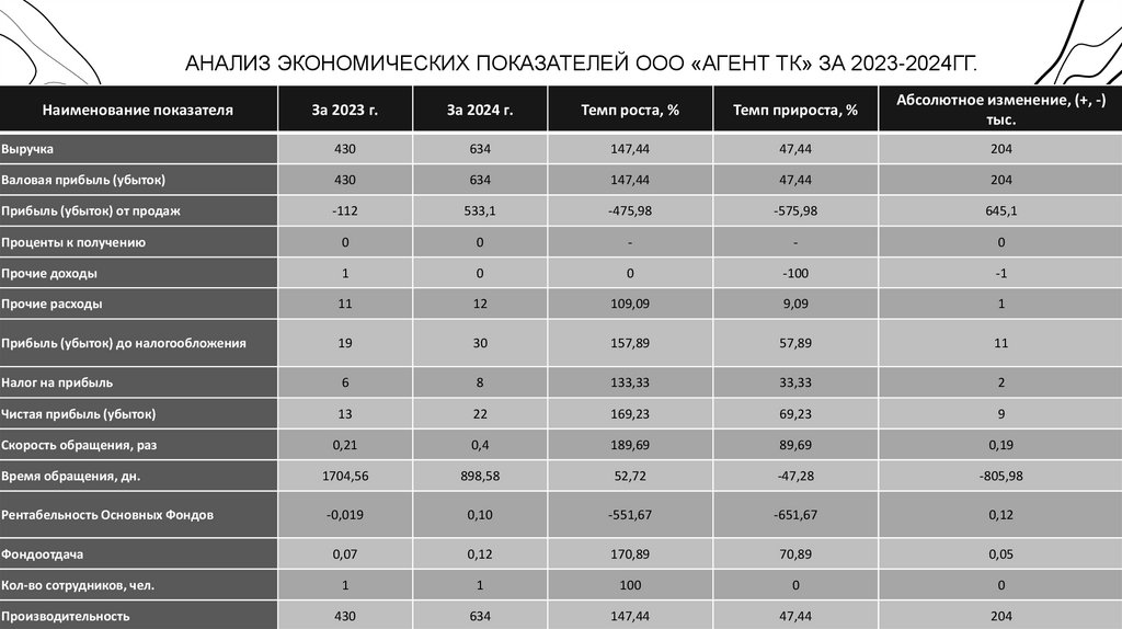 АНАЛИЗ ЭКОНОМИЧЕСКИХ ПОКАЗАТЕЛЕЙ ООО «АГЕНТ ТК» ЗА 2023-2024ГГ.За 2023 г.
