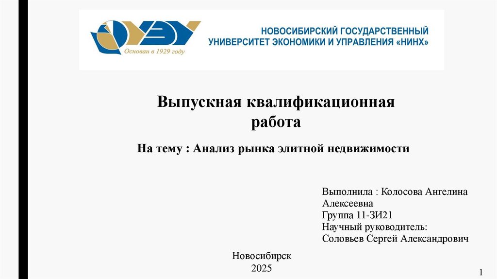 Целью данной дипломной работы является проведение анализа рынка элитной недвижимости в г.Новосибирске, выявление основных тенденций и перспектив его развития.