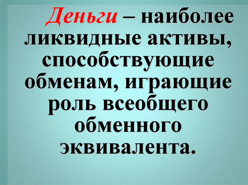 Деньги – наиболееликвидные активы,