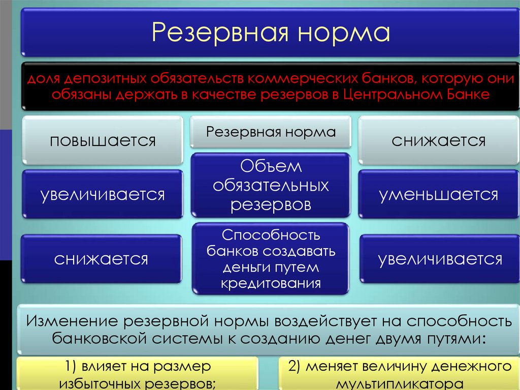 Изменение резервной нормы воздействует на способность