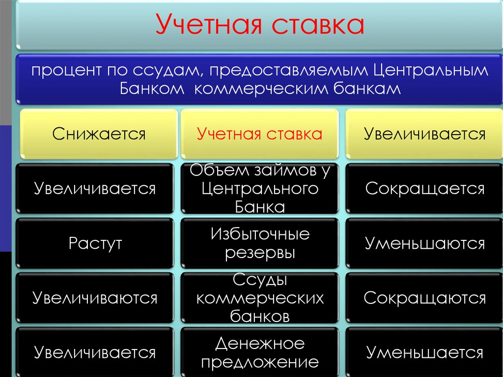 Учетная ставкапроцент по ссудам, предоставляемым Центральным