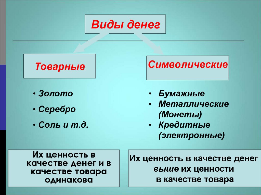 Виды денегТоварные