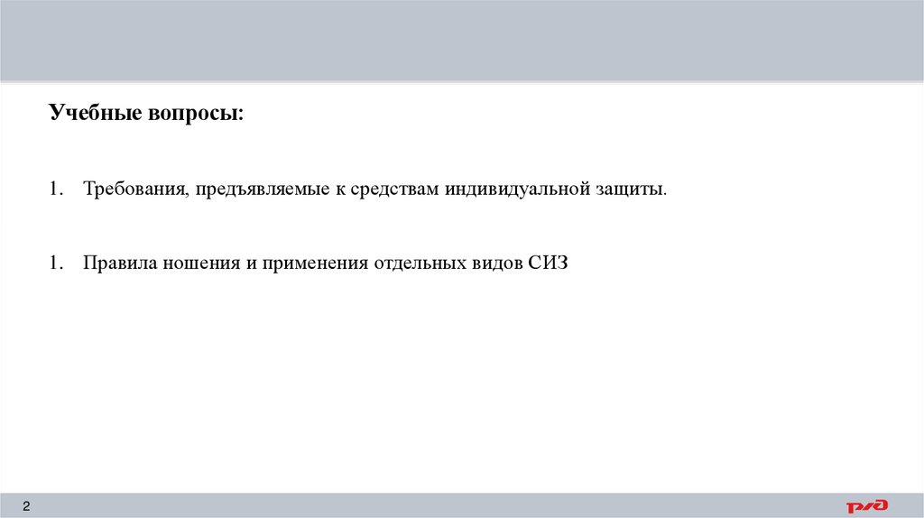 Учебные вопросы:1. Требования, предъявляемые к средствам индивидуальной защиты.