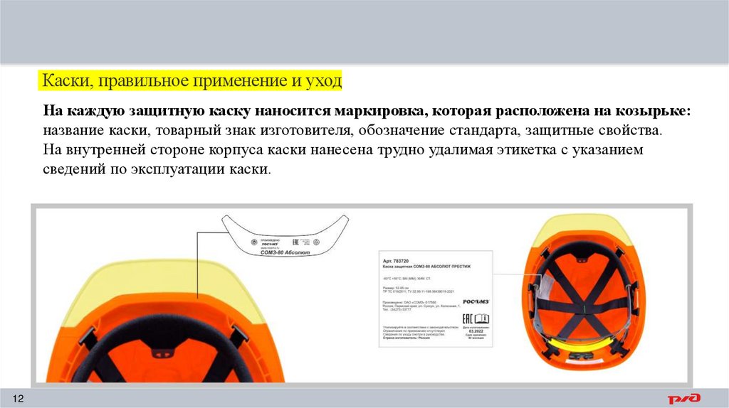 сведений по эксплуатации каски.