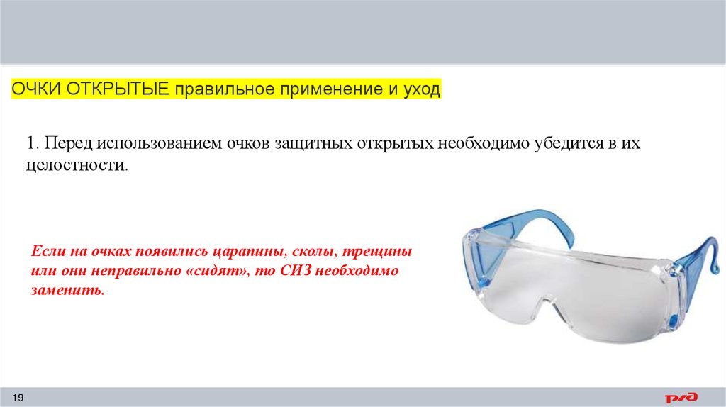 ОЧКИ ОТКРЫТЫЕ правильное применение и уход1. Перед использованием очков защитных открытых необходимо убедится в их