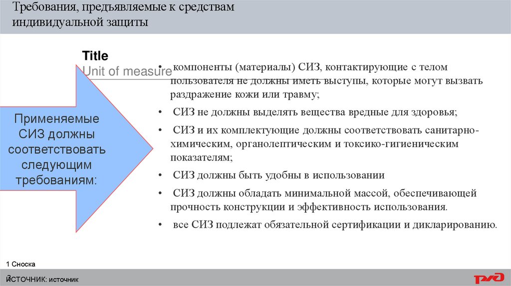 • СИЗ и их комплектующие должны соответствовать санитарнохимическим, органолептическим и токсико-гигиеническим
