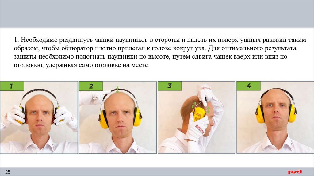 защиты необходимо подогнать наушники по высоте, путем сдвига чашек вверх или вниз по