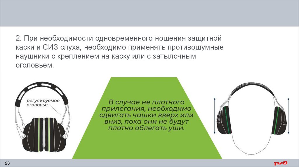 2. При необходимости одновременного ношения защитнойкаски и СИЗ слуха, необходимо применять противошумные