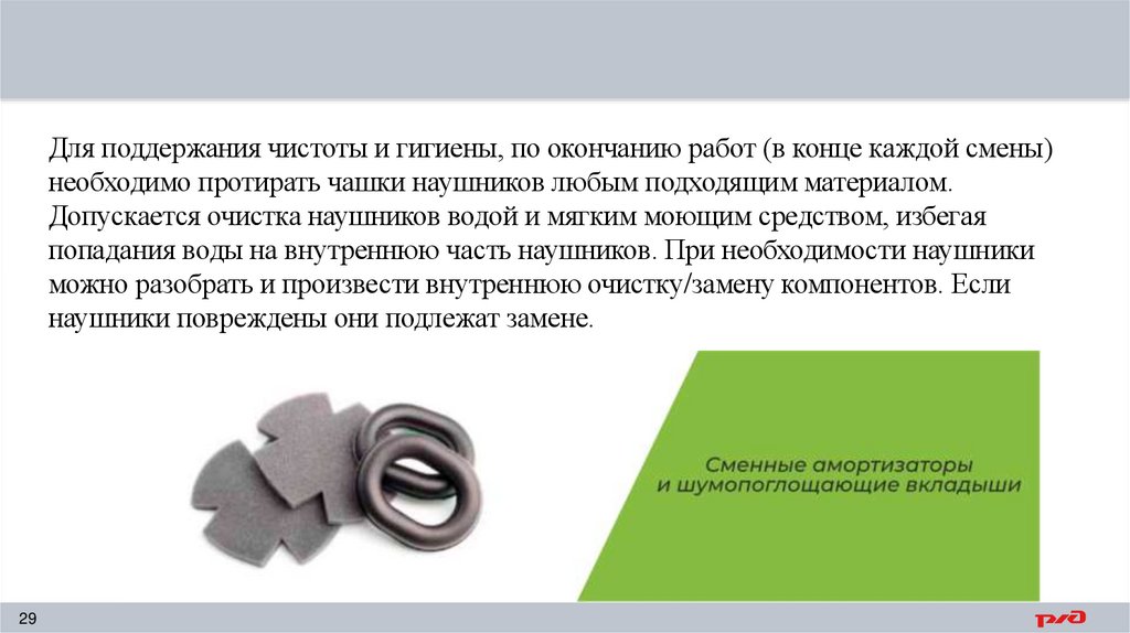 Для поддержания чистоты и гигиены, по окончанию работ (в конце каждой смены)необходимо протирать чашки наушников любым подходящим материалом.