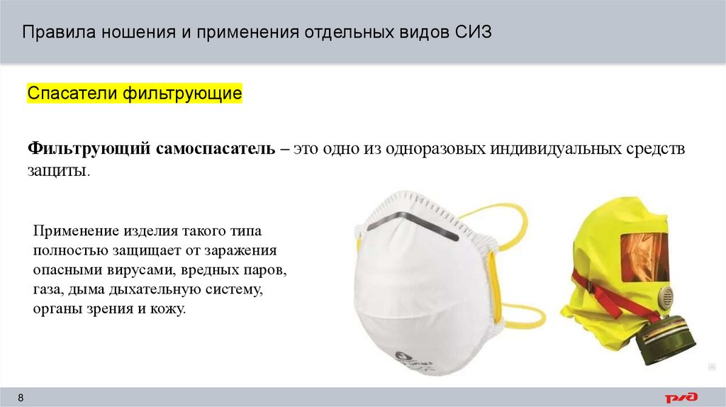 Правила ношения и применения отдельных видов СИЗСпасатели фильтрующие