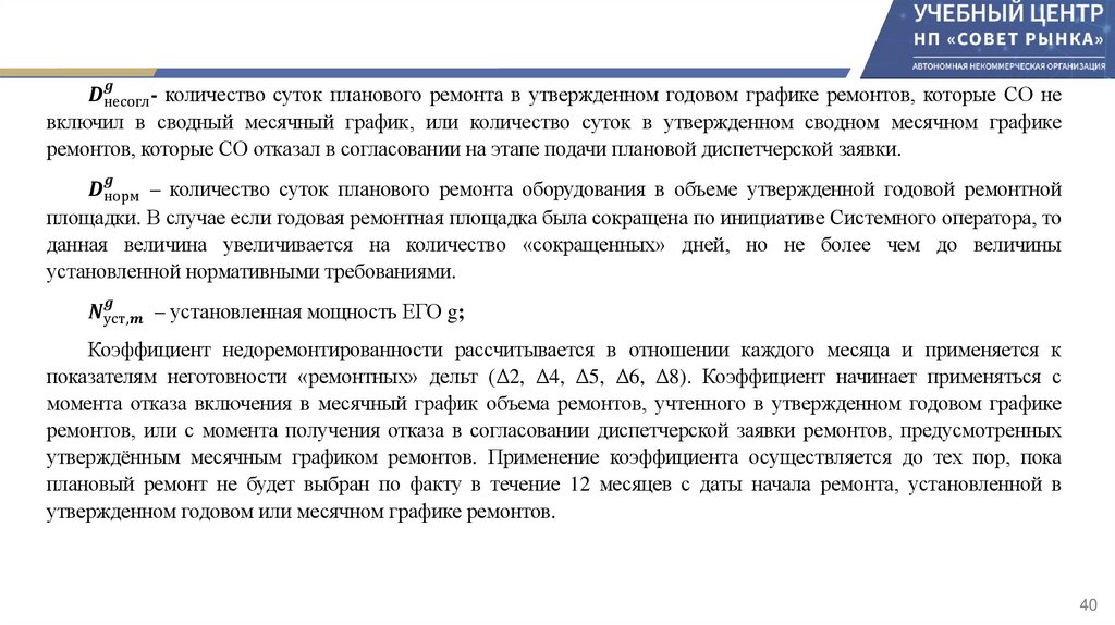 При расчете показателей неготовности предлагается учитывать фактор недоремонтированности генерирующего