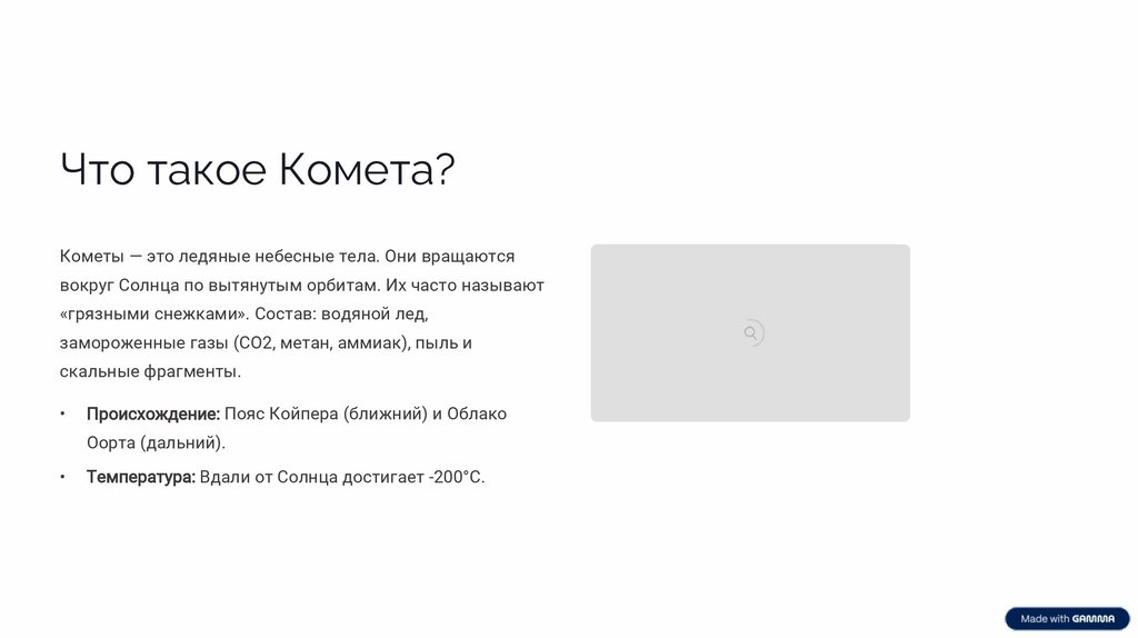 Что такое Комета?Кометы — это ледяные небесные тела. Они вращаются
