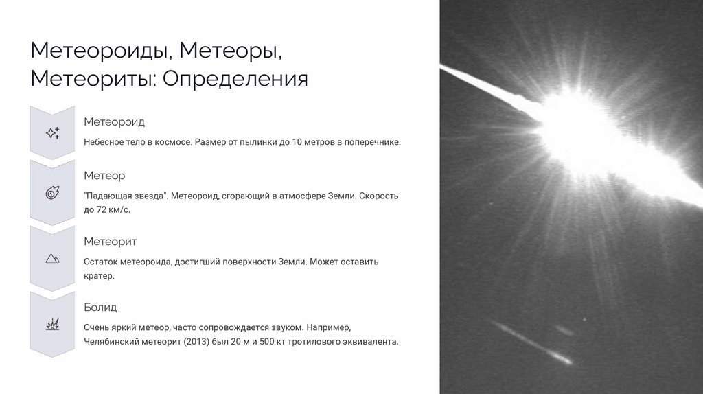 Небесное тело в космосе. Размер от пылинки до 10 метров в поперечнике.