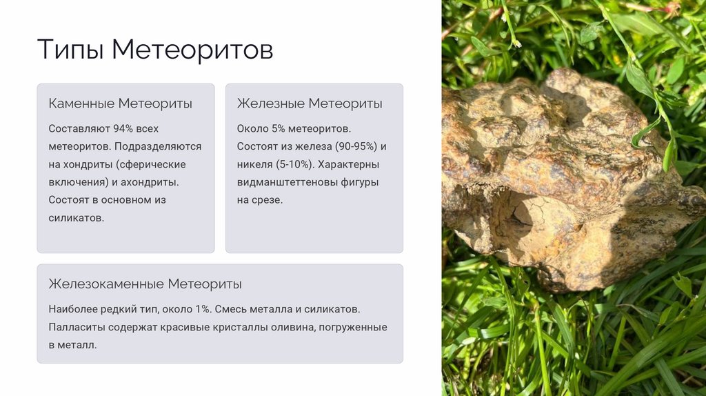 Наиболее редкий тип, около 1%. Смесь металла и силикатов.