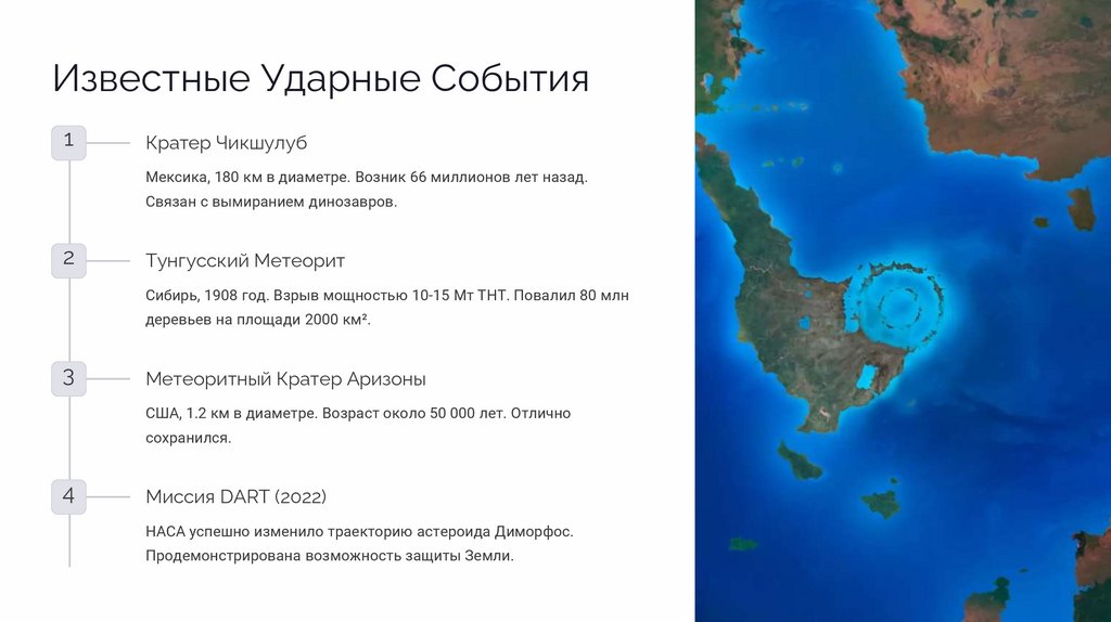 Мексика, 180 км в диаметре. Возник 66 миллионов лет назад.