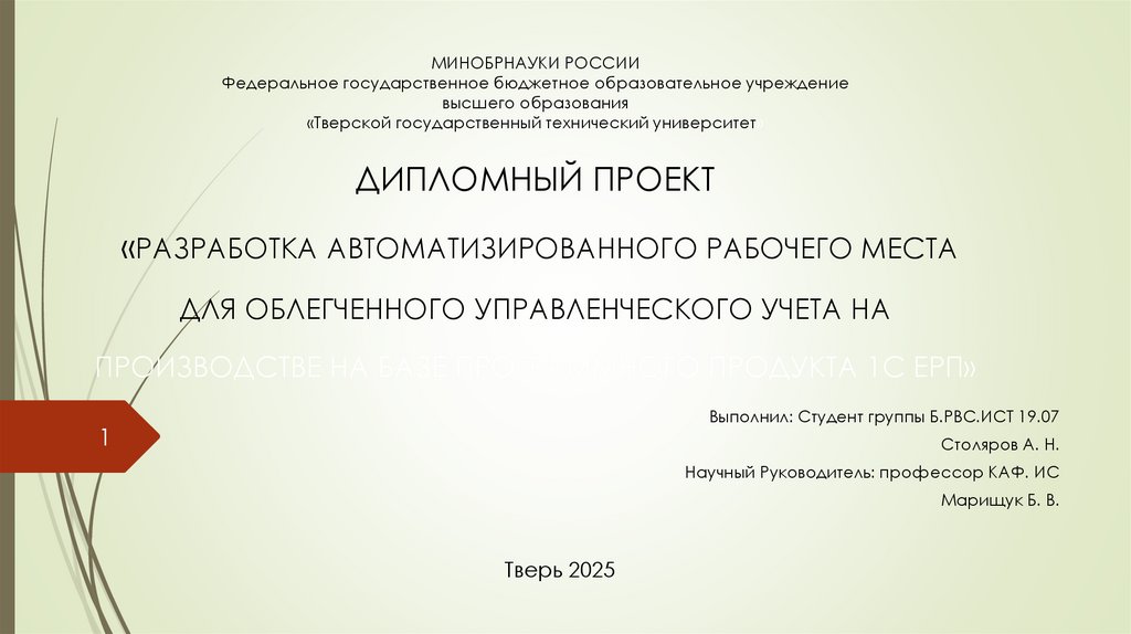Разработка автоматизированного рабочего места для облегченного управленческого учета на производстве