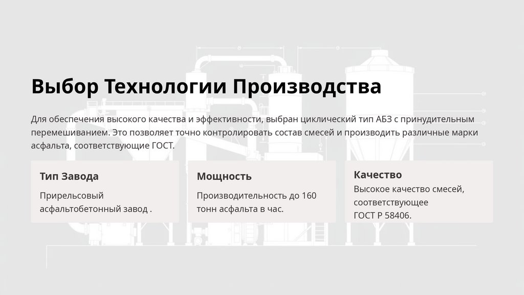 Выбор Технологии ПроизводстваДля обеспечения высокого качества и эффективности, выбран циклический тип АБЗ с принудительным