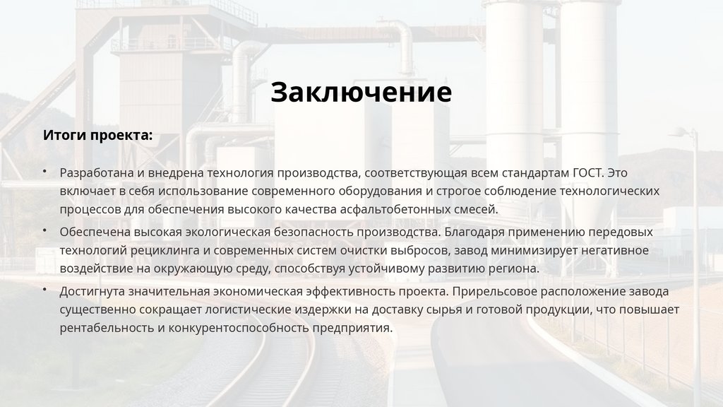Достигнута значительная экономическая эффективность проекта. Прирельсовое расположение завода