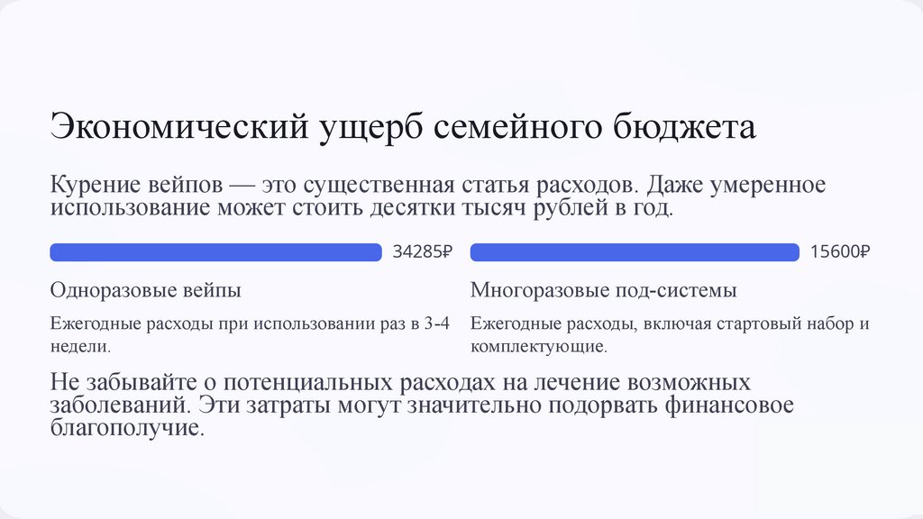 Экономический ущерб семейного бюджетаКурение вейпов — это существенная статья расходов. Даже умеренное
