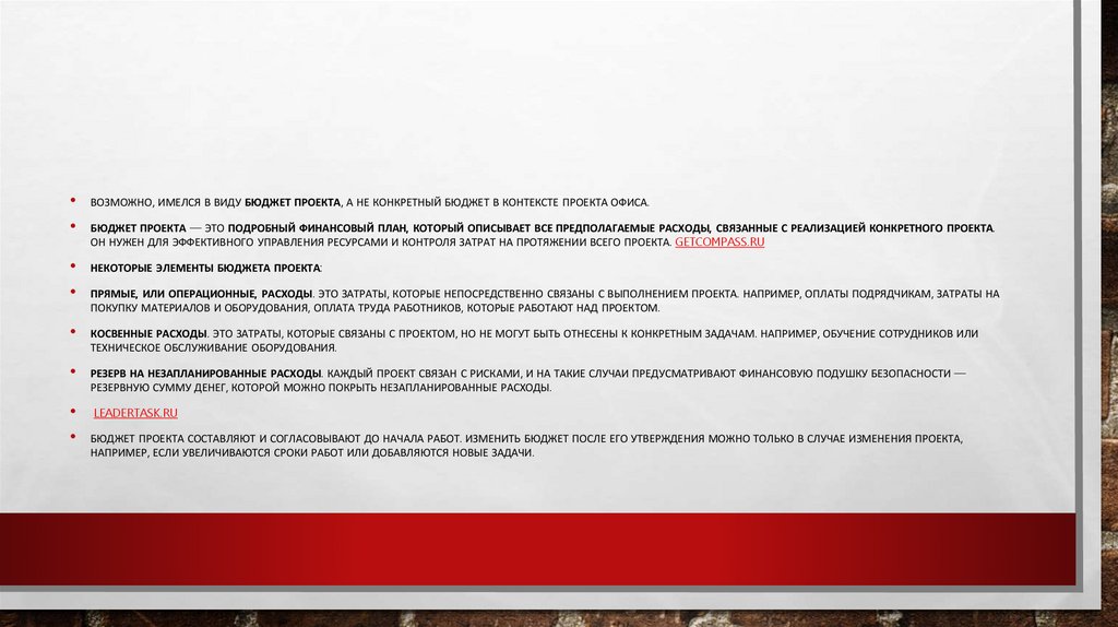 ВОЗМОЖНО, ИМЕЛСЯ В ВИДУ БЮДЖЕТ ПРОЕКТА, А НЕ КОНКРЕТНЫЙ БЮДЖЕТ В КОНТЕКСТЕ ПРОЕКТА ОФИСА.